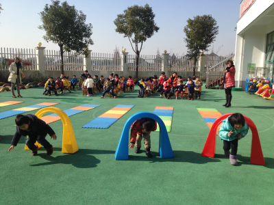 初冬来袭, 孩子们运动的积极性明显差了,为了激励孩子我们南区开展了“我运动,我健康”的健康主题活动。活动前,我们年级组进行了审议活动,待确定运动项目后,进行了前期的练习准备工作。最后我们在12月8日、9日两天,三个年龄班分别开展了该活动。大班是“我爱拍皮球”,要求幼儿原地拍球十五个以上,有了前期的练习,大部分孩子能达到该目标。中班是“看谁跑得快”,训练孩子听信号进行快速往返跑,孩子们表现也不错。最可爱的是小班的宝贝们,我们学做小蚂蚁爬,宝贝们可努力了,个个爬得很快,大家还会为同伴喊加油,非常不错。来看看照片吧。