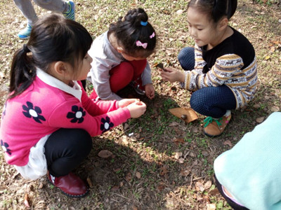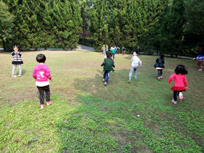 一路上孩子们有说有笑高兴极了。他们边走边和灿烂的阳光打招呼,和黄绿的小草做游戏,对着落叶唱起了歌,还不时对着老师问这问那。孩子们在树林中穿梭,在草地上奔跑,捡落叶,拾松果,大家的脸上洋溢着按耐不住的兴奋和愉悦。